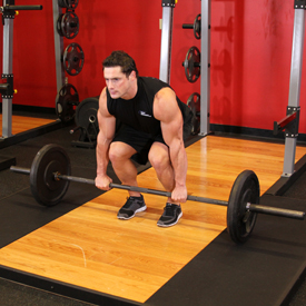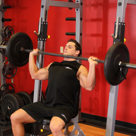 1- قرفصاء مع الاستعانة برجل امامى على الجهاز لتجنب الاضطرار لتخفيف الاوزان من على البار